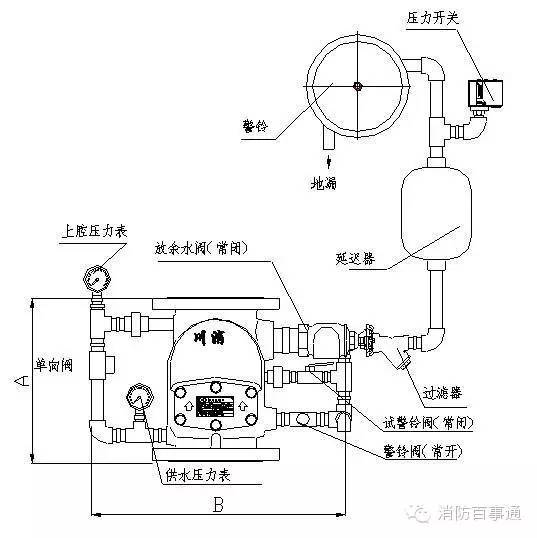 濕式報警閥與延遲器、壓力開關(guān)、水力警鈴、灑水噴頭、消防供水系統(tǒng)等連接組成自動噴淋滅火系統(tǒng)。是自動噴淋滅火系統(tǒng)中重要的報警控制閥門。